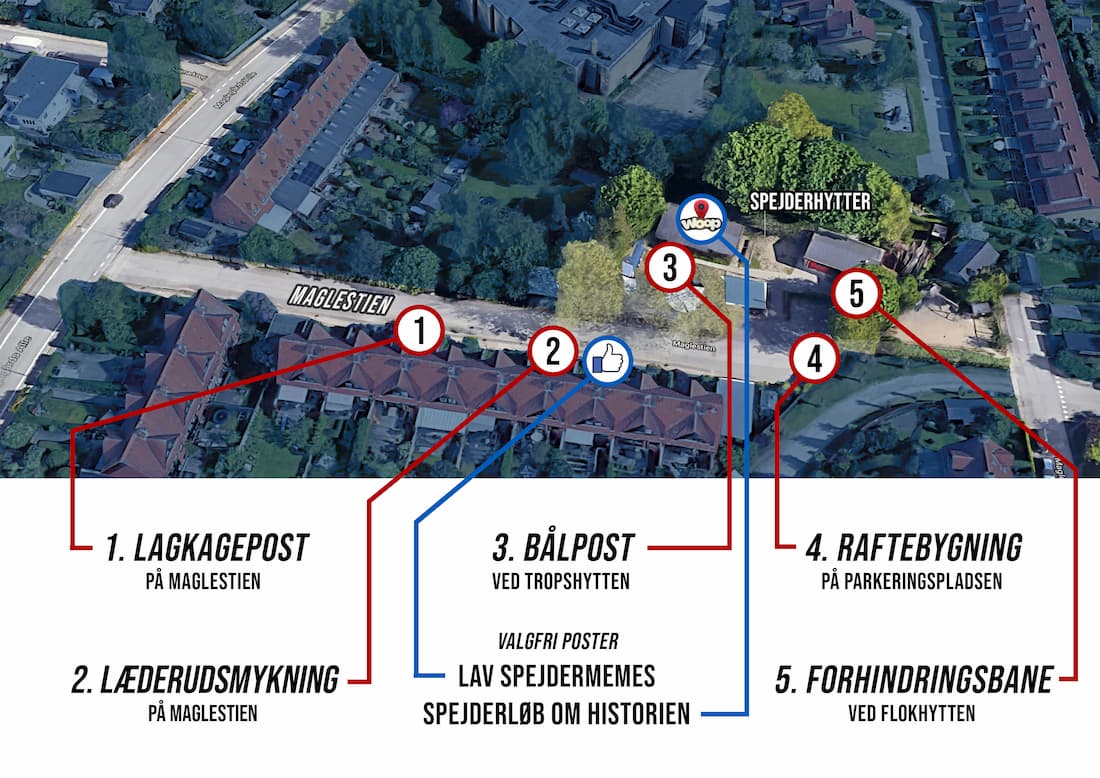 Når du har lavet de 5 (som er nr. 1-5 på kortet) får du helt gratis et spejdermærke til minde om jubilæumsdagen (værdi 25 kr).