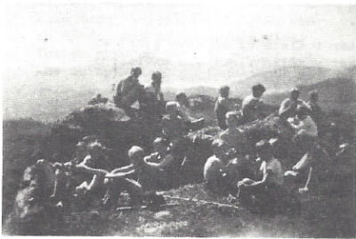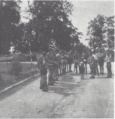 Korpsets patruljeturnering 1953. Mågerne blev nr. 7 i turneringen. Her ses patruljen under hejken.