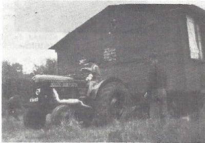 1953. Hytten flyttes fra Marienborg Allé/Frødings Allé til Gladsaxevej. Carlo Hansen, tidligere tropsspejder, kører traktoren.